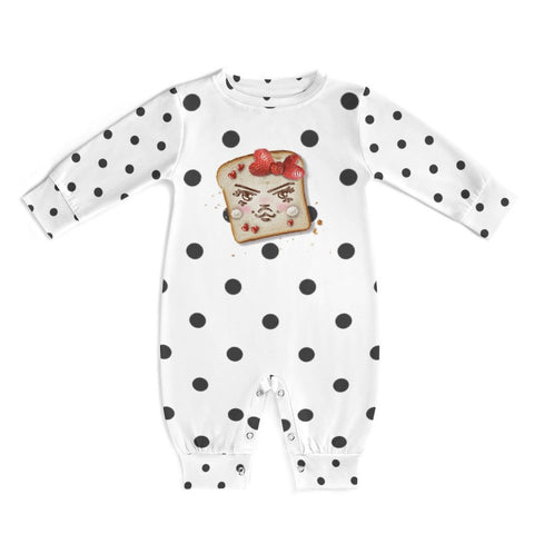 “Nutella & Strawberries" polyester-blend baby romper with snap closure + removable external care label